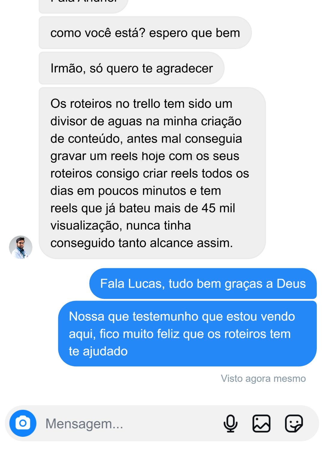 Ao longo desses anos, percebi que o maior desafio da maioria das pessoas não é gravar vídeos, mas sim saber o que dizer o que realmente prende a atenção da audiência e gera resultados.